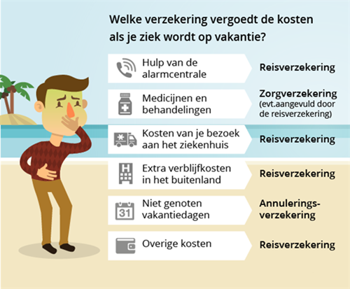 Je Nederlandse zorgverzekering betaalt ook de zorg die je nodig hebt in het buitenland. Maar, wel volgens de Nederlandse prijzen. Lig je in een Amerikaans ziekenhuis of in een dure privékliniek, dan kan het zijn dat je zorgverzekeraar niet alles vergoedt. In dat geval vult je reisverzekering de uitkering van de zorgverzekering aan, zodat je schadeloos bent.