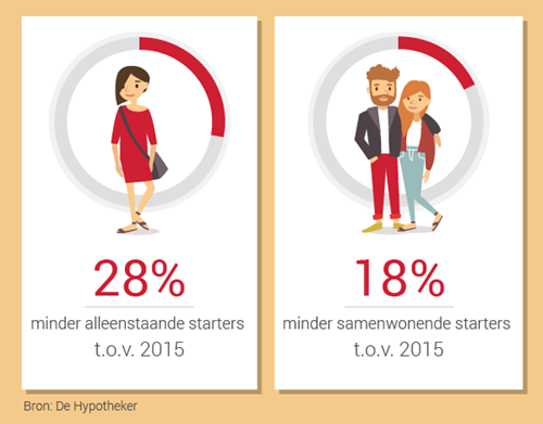 Door de stijgende huizenprijzen vallen veel woningen buiten de financiële mogelijkheden van single starters. Bovendien gelden dit jaar strengere hypotheekregels voor alleenstaanden. Hun maximale hypotheeksom loopt daardoor terug.