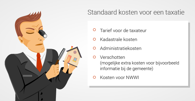 De kosten voor een woningtaxatie zijn voor rekening van de koper. De exacte kosten zijn van meerdere factoren afhankelijk. Zo rekent de ene taxateur een vaste prijs en de andere een percentage van de woningwaarde. In het onderstaande overzicht zie je het type kosten die je bij een taxatie kunt verwachten.