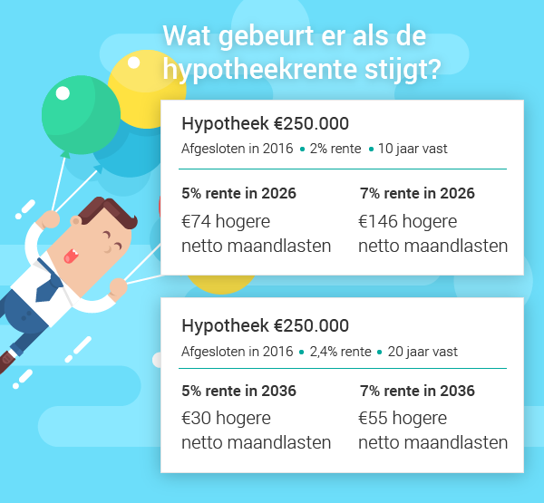 De toename van de maandlasten valt dus mee. Zeker als je bedenkt dat de gevolgen van inflatie niet zijn meegenomen. Het werkelijke gevaar schuilt in een waardedaling van je huis. Als je huis minder waard wordt, kun je de lasten misschien nog wel dragen, maar een verkoop zou je een substantiële restschuld opleveren.