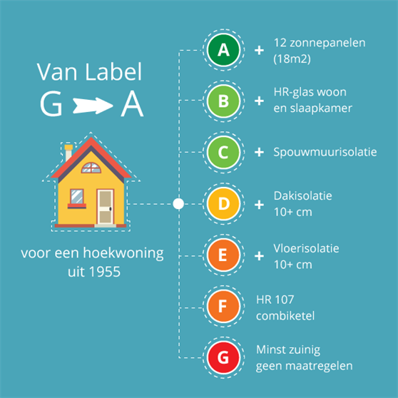 Het energielabel laat in één oogopslag zien hoe energiezuinig je huis is in verhouding tot vergelijkbare woningen. Label G is het minst zuinig, label A het meest zuinig. Bij de verkoop of verhuur van je huis is een definitief energielabel verplicht. Welk energielabel je hebt, blijkt ook belangrijk bij de verkoop.