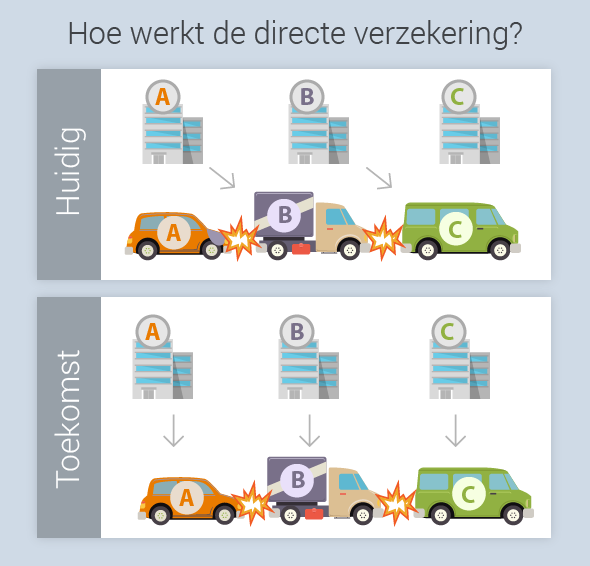 Afgezien van de betaalde vergoeding zit de grootste kostenpost in schade-afhandeling in het bepalen van de schuld- een aansprakelijkheidsvraag. Als een verzekeraar niet meer hoeft uit te zoeken voor welk deel de klant zelf aansprakelijk is, bespaart dat veel tijd en kosten. Een enorme kettingbotsing in Zeeland opende de ogen van veel autoverzekeraars.